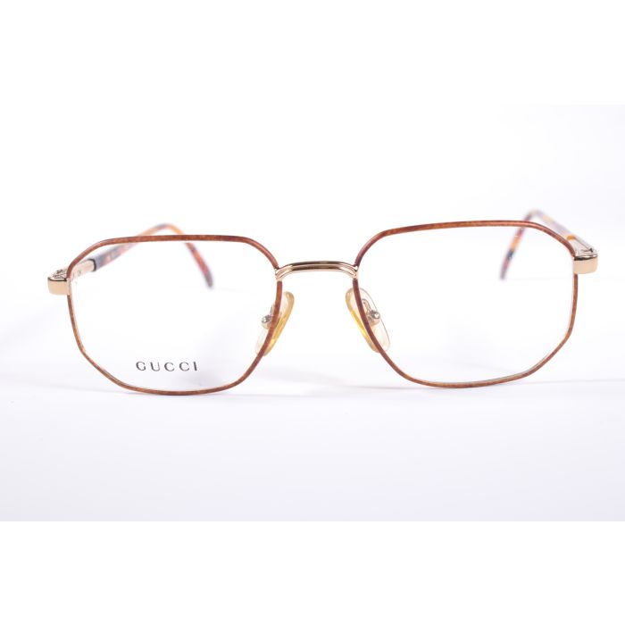 Description / Gucci GG 1339 JV385 Brown/Gold Irregular Full Rim vintage Men’s new glasses with Clear Lenses